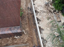 Сначала мы разбираем гранитный цоколь, разбиваем находящийся под ним бетон. В получившуюся траншею укладываем арматуру, по периметру участка возводим опалубку.